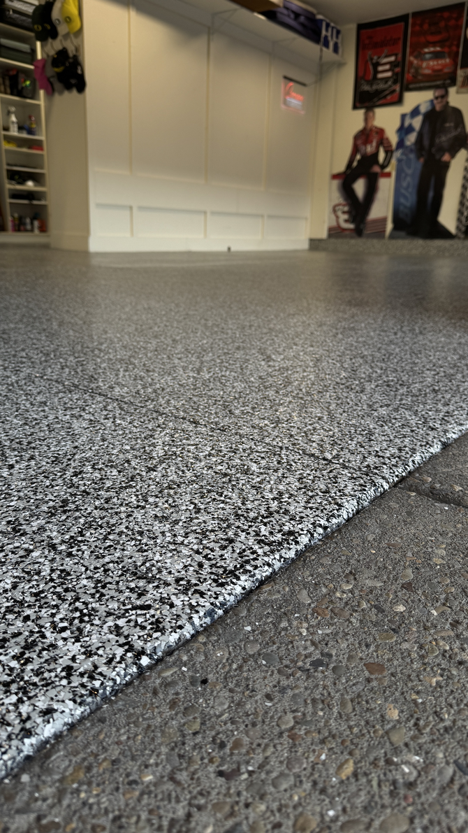 If you're tired of dull garage floors, Diamond Group has the solution: flakes floors. Flake floors add an exciting, customizable element to any garage makeover. Our flooring options come in various colors, sizes, and shapes to give your garage the personality it deserves. Not only does a flake floor look great, but it's also incredibly durable and resistant to stains, cracks, and chipping. Our flooring options are designed to withstand heavy foot traffic and any equipment or vehicles you may have in your garage. Refrain from settling for bland, dull floors in your garage; impress your friends and family with a beautiful, functional, customizable flakes floor option from Diamond Group. Our team of experts will work with you to find the perfect flooring option for your garage and provide installation services that are quick and easy. With Diamond Group's flakes floors, your garage will be transformed into a sleek, stylish, and functional space that you'll be proud to show off. Call us today!